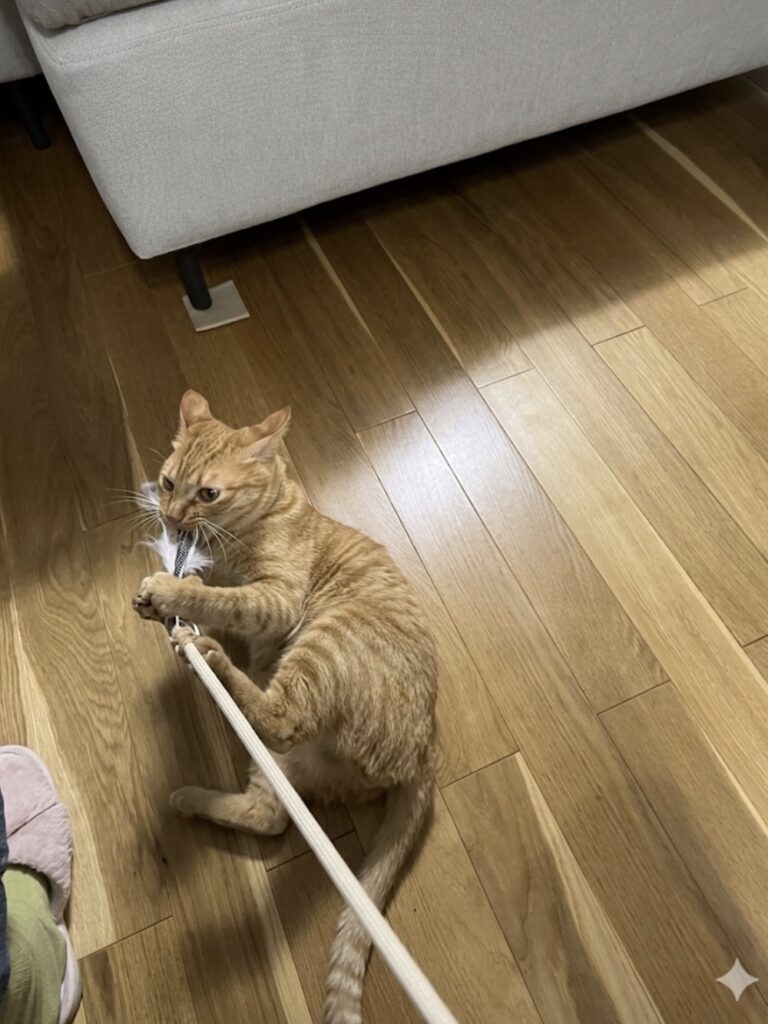 夜寝る前に、猫じゃらしで5分だけ全力で遊びます。