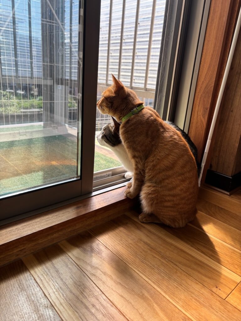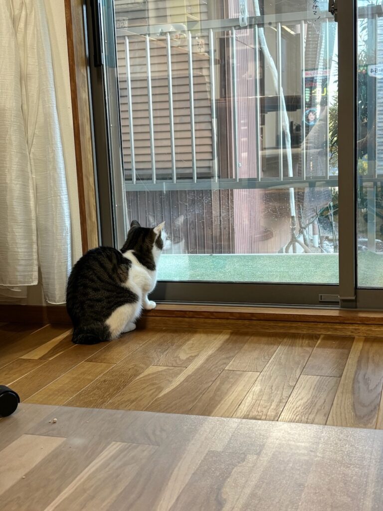 あれから2年。ロンちゃんは今日も窓辺で外を眺め、パトロールに余念がありません。