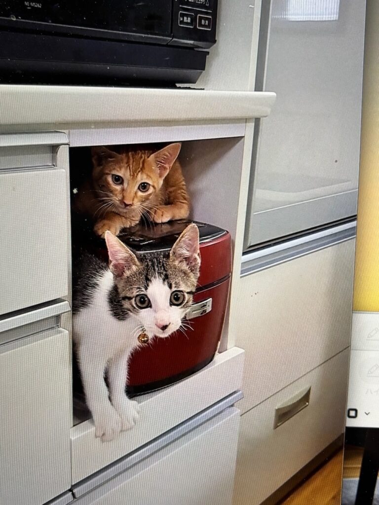 2匹が大きくなって、最近はキッチンのカウンターまでひとっ飛び🐾