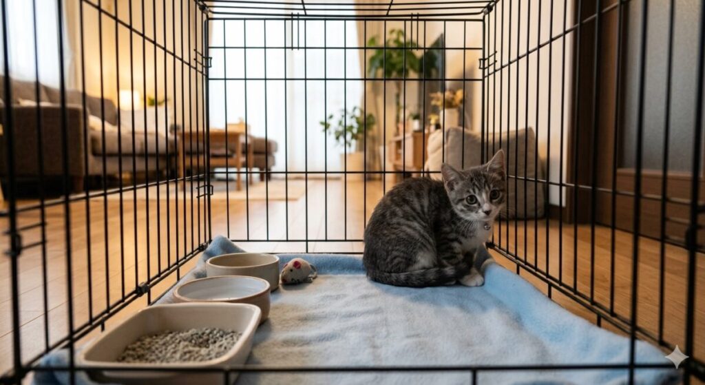 最初は1部屋か、ごはん・トイレ・寝床をまとめた狭いスペースに限定する方が、猫は早く落ち着けます。