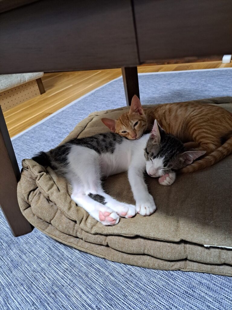 リーは生後1ヶ月くらいで保護された子。 2匹ともうちに来てから、元気に遊びまわっていて、