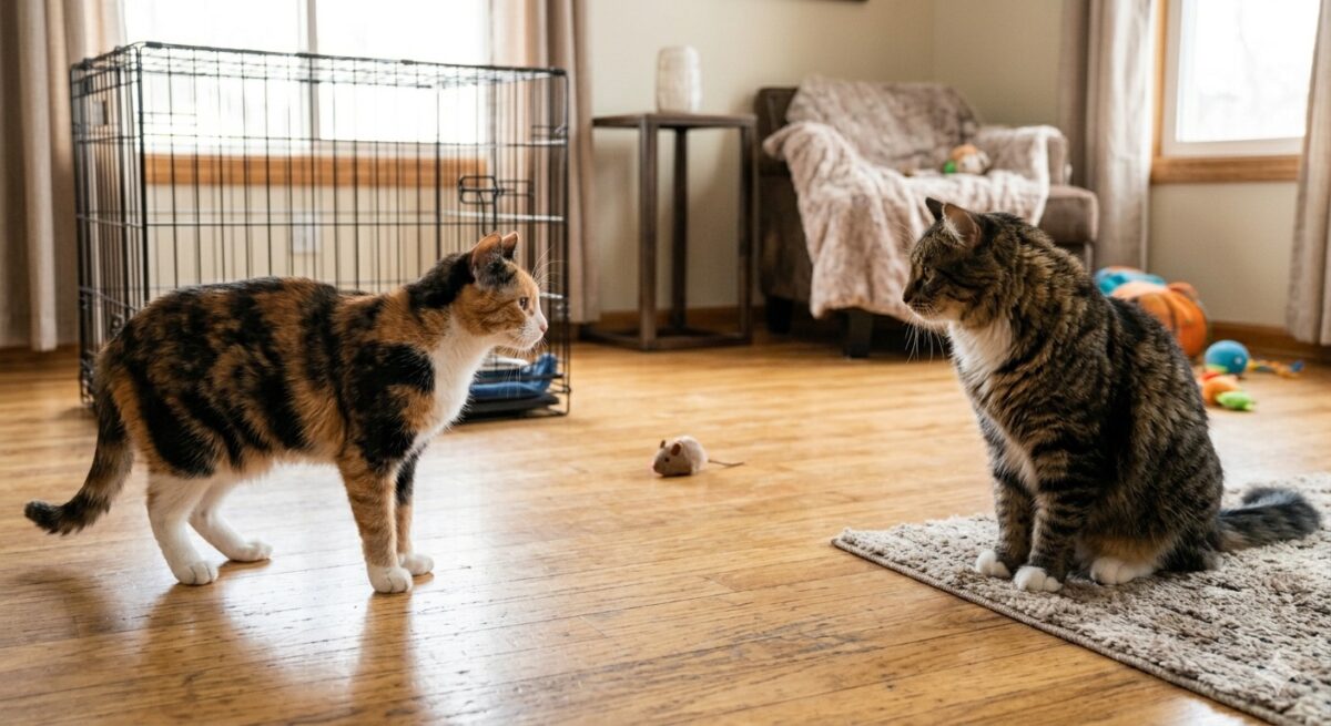 先住猫は「なぜ見知らぬ猫が自分の空間にいるのか」と本能的に警戒します。