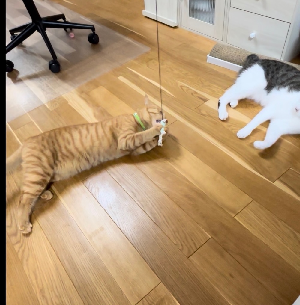 我が家の保護猫リーとロンも、高級なキャットタワーより、窓辺の棚のほうがお気に入りだったりします。